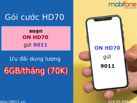 Gói HD70 là một trong những gói đăng Ký 3G Mobi 1 tháng được nhiều người dùng yêu thích vì thuê bao có thể hòa mạng không giới hạn mọi lúc mọi nơi. Đăng ký gói HD70 theo cú pháp ON HD70 gửi 9011, chỉ với 70.000đ/ tháng hòa mạng thả ga cùng MobiFone. Theo dõi thông tin sau để rõ hơn về gói cước 3G tháng của MobiFone nhé!